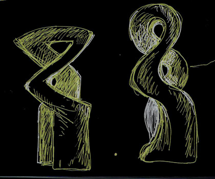 El boceto es una parte, quizás la más importante, en la creación de obras. Y a su vez sigue enriqueciendo y el cerebro se realimenta de los propios diseños. Pero a la hora de ejecutar una pieza, el boceto sólo es usado unos breves momentos al comienzo. Posteriormente el diálogo tiene que ser directo y vivo entre el ejecutor y la escultura, sin miedo a apartarse todo lo que se necesario de la idea original.